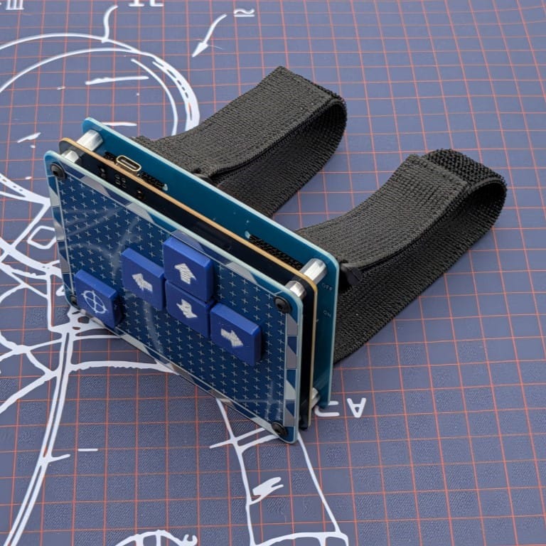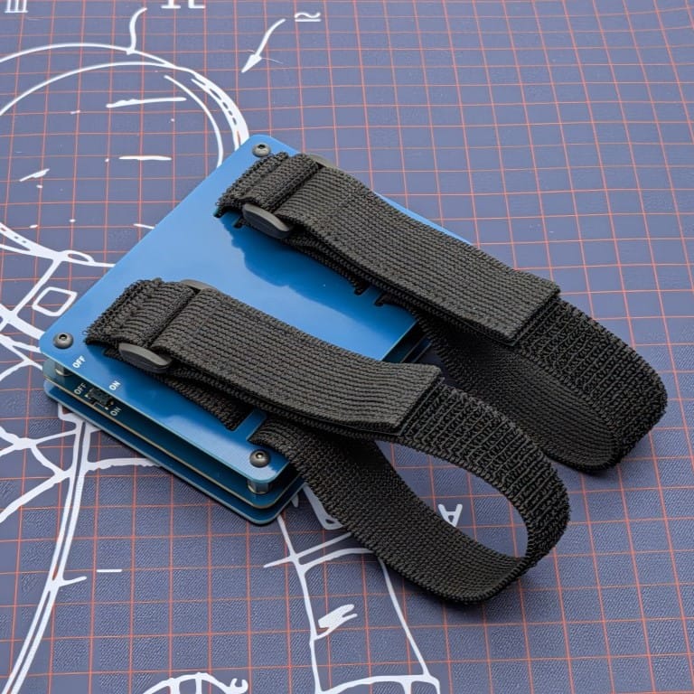 The brains of the StrataPad are sandwiched between two FR4 plates. The keycaps are designed and 3D Printed in the USA. The Bluetooth wireless connection is powered by a Seeed Studio nRF52840 controller and a 525mAh Lithium Polymer battery. It has two adjustable, elastic armbands so it can be worn conveniently on your arm. The bands are also removable, making it useable on your desk.